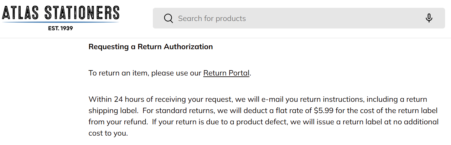 Stationery store Atlas Stationers offers returns for up to 30 days for all products in their original packaging.