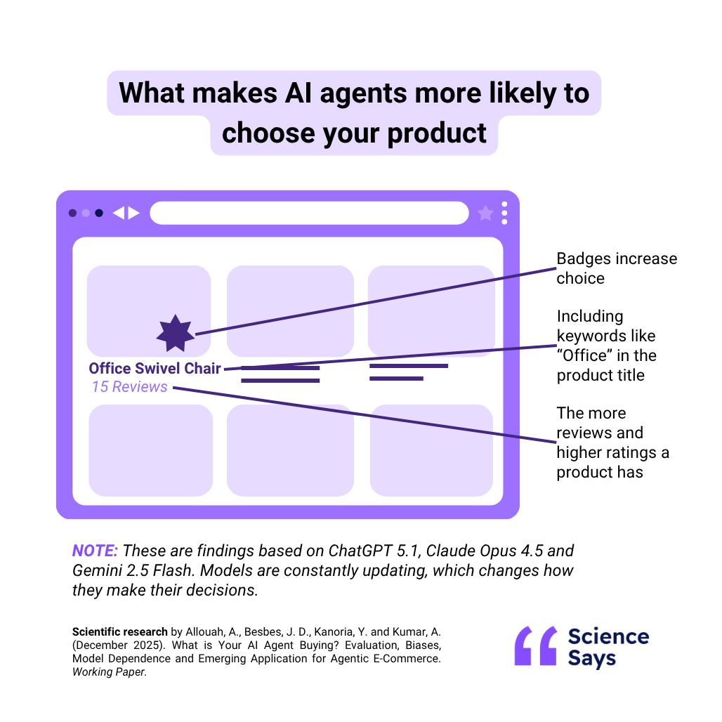 To address this, a new branch of research is emerging in parallel with āconsumer behaviorā. Letās call it āAI agent behaviorā. It tells us: what is an AI agent most likely to buy?
